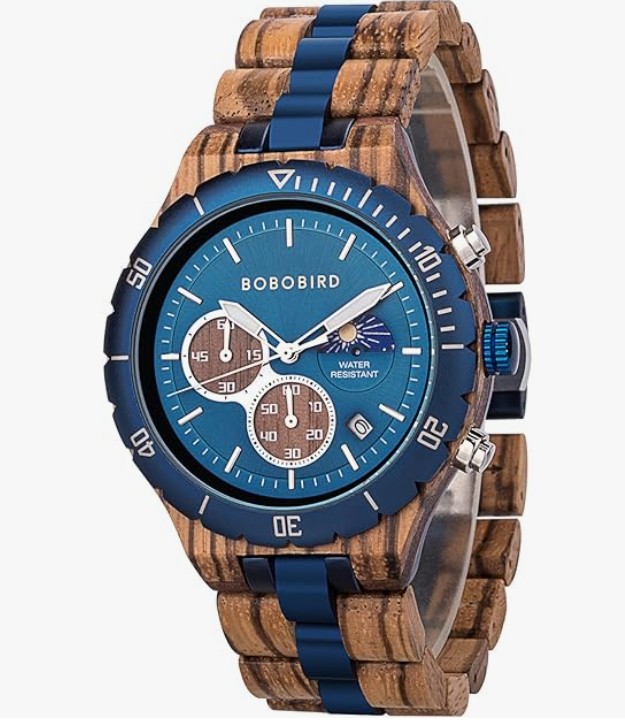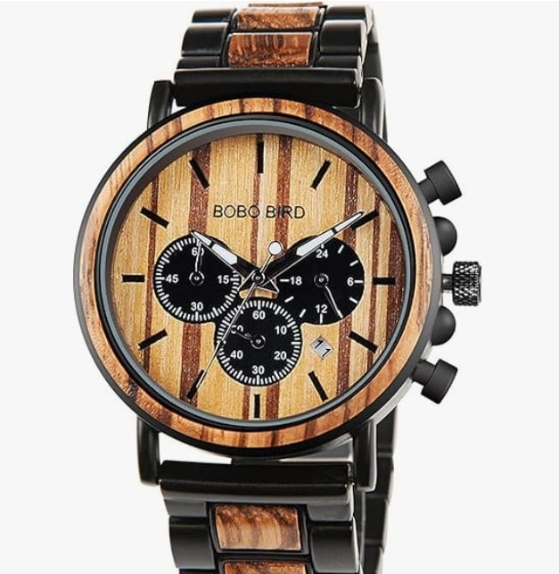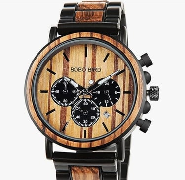 BOBO BIRD Wood & Stainless Steel Combined Chronograph