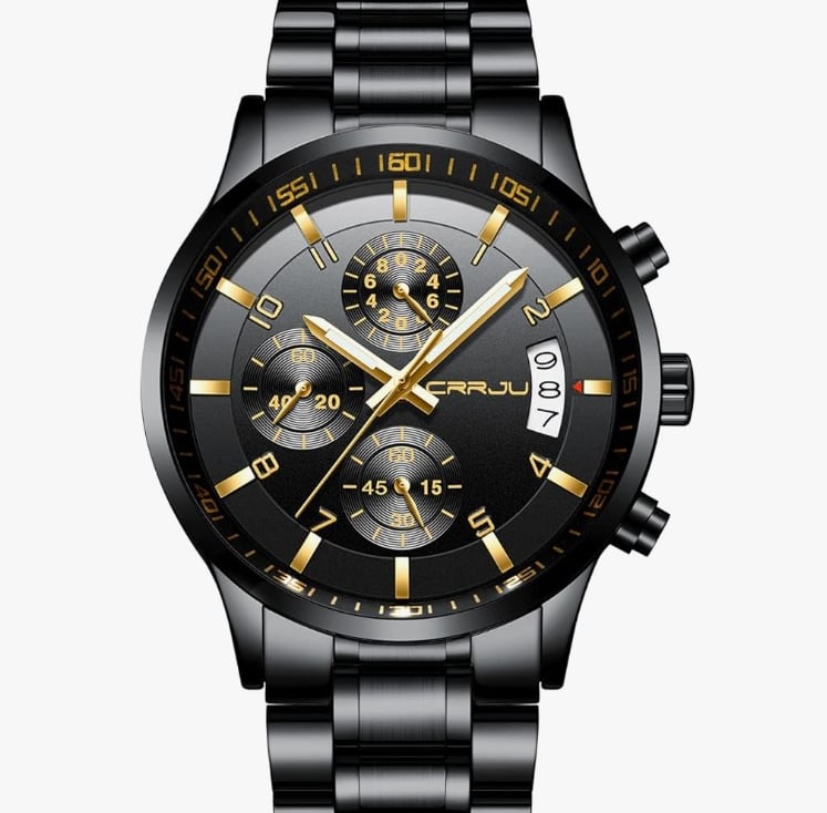 BCRRJU Black/Gold Stainless Steel Waterproof Chronograph