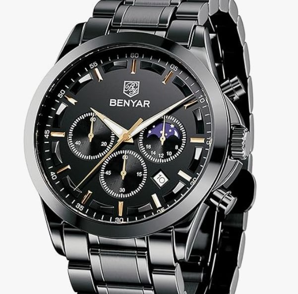 Golden Hour Stainless Steel Black Men's Luxury Watch